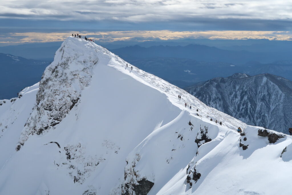 谷川岳 天神尾根を登る人々。西黒尾根より。